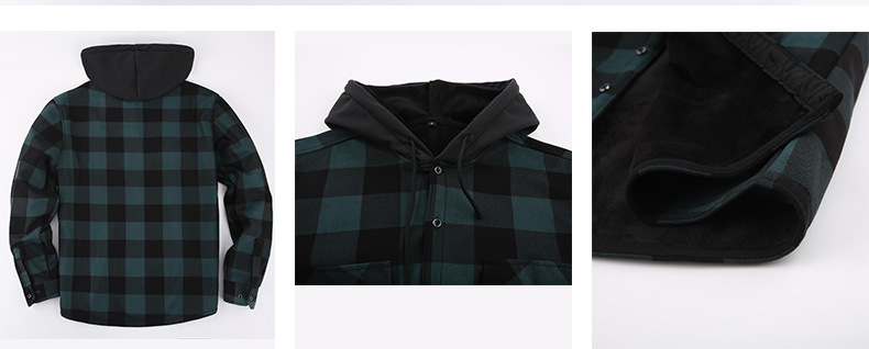 Мъжко карирано фланелено яке с дълъг ръкав и качулка,